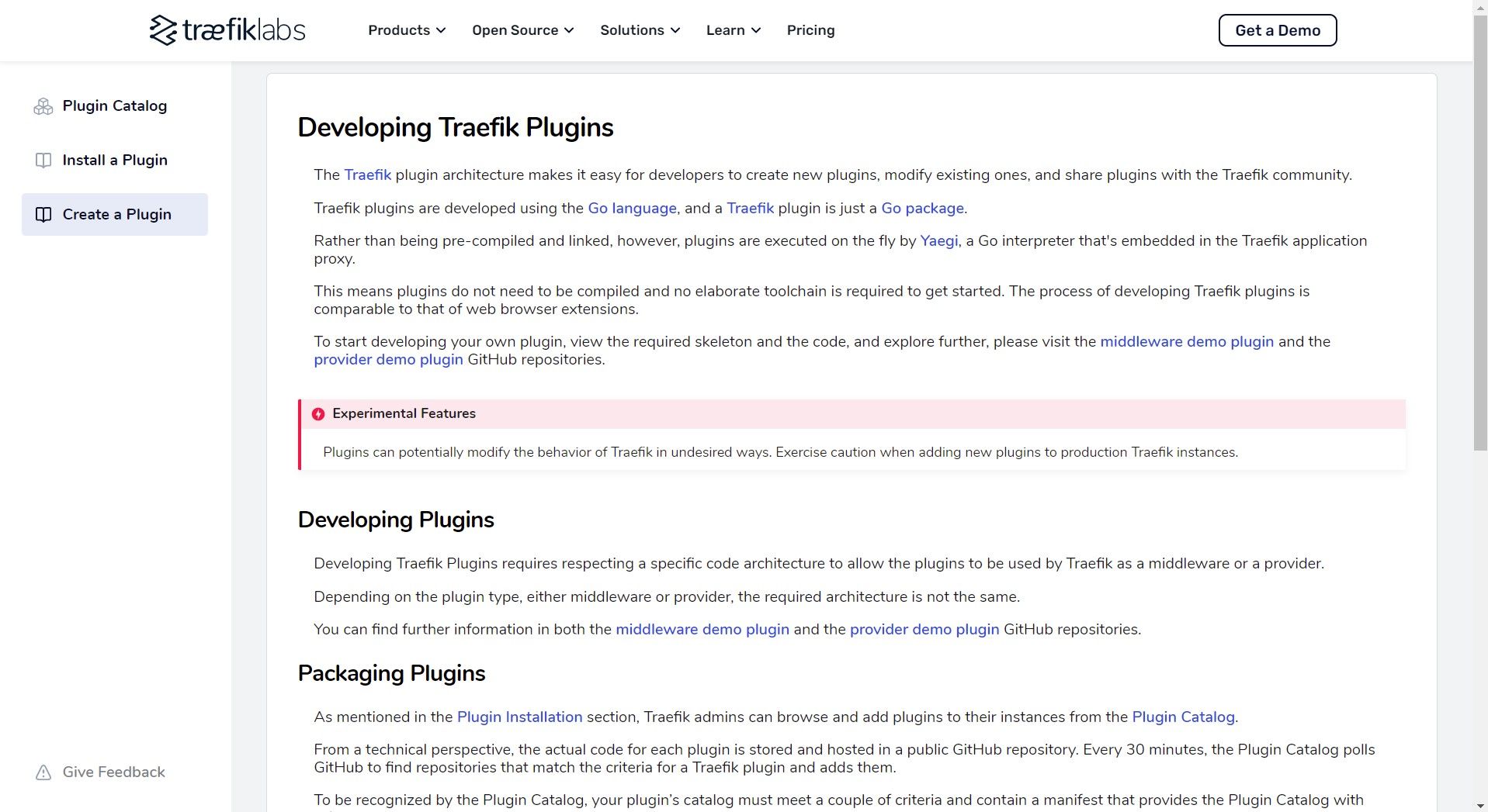 There are some specific criteria and code architecture to allow a plugin to be used by Traefik, so, on top of going through the documentation, and if needed, you can see more details about each type of plugins in the dedicated repositories for middleware demo plugin and provider demo plugin.