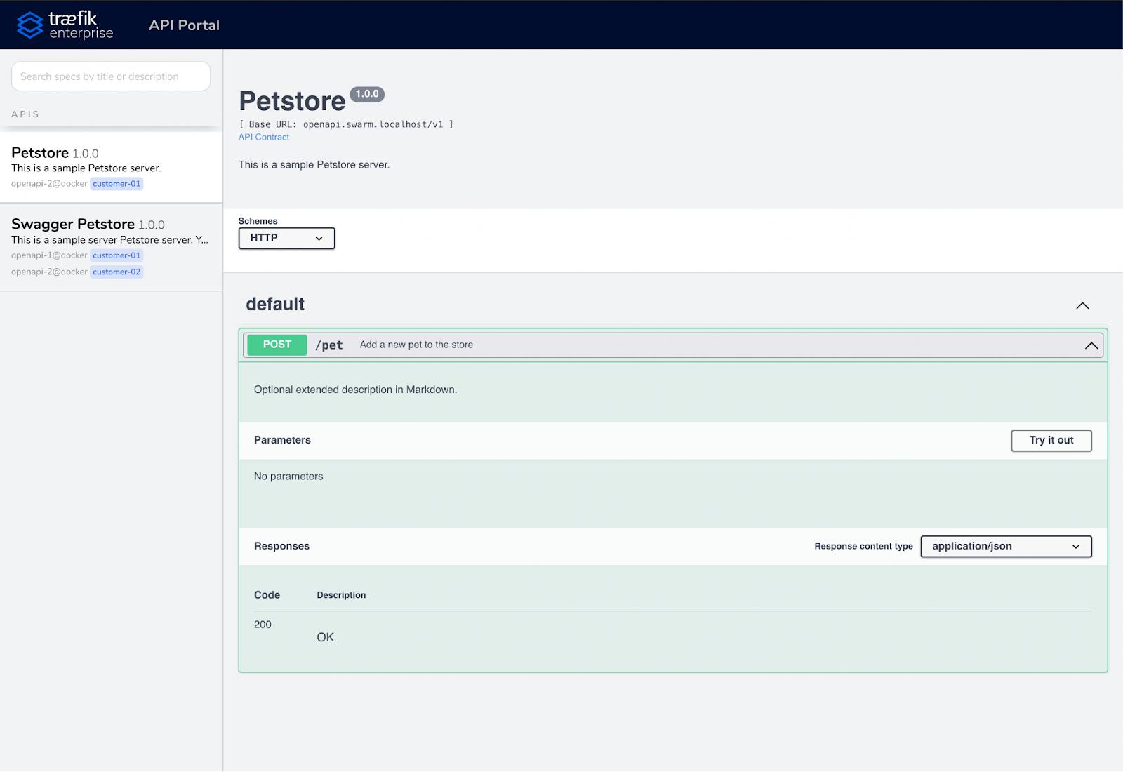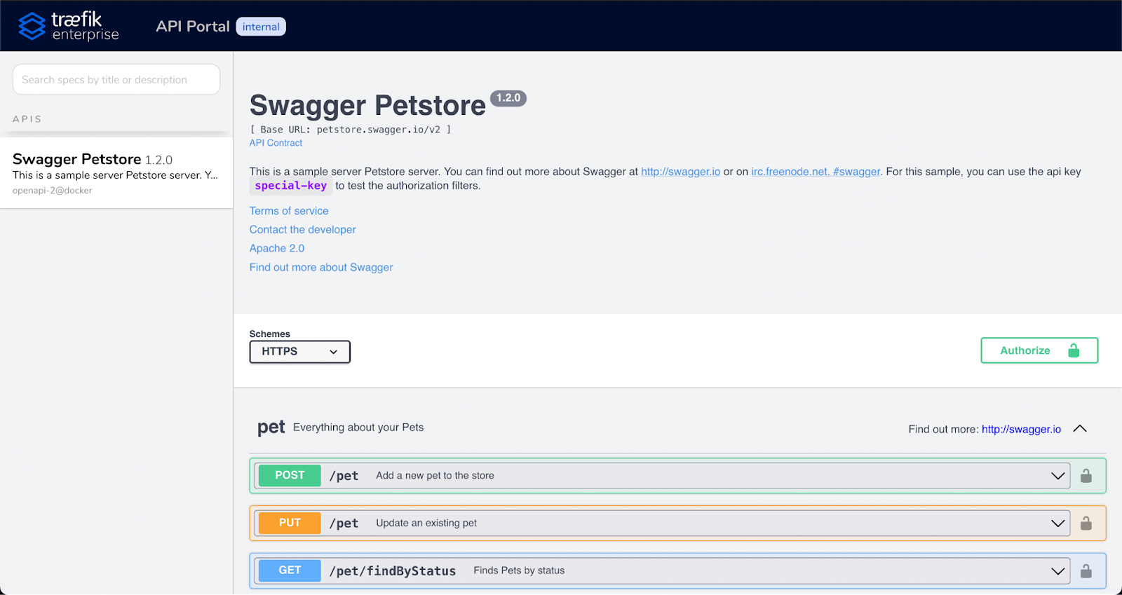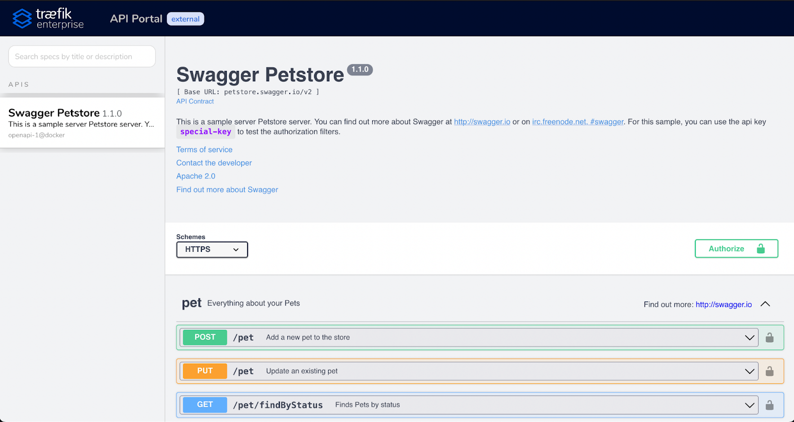 Thankfully, the OpenAPI Initiative allows you to standardize your APIs and make them readable and testable. The Traefik Enterprise API Portal uses the OpenAPI specifications to offer our customers a solution to expose their APIs in one place, creating a single source of truth for all their APIs in a fast and simple way.
