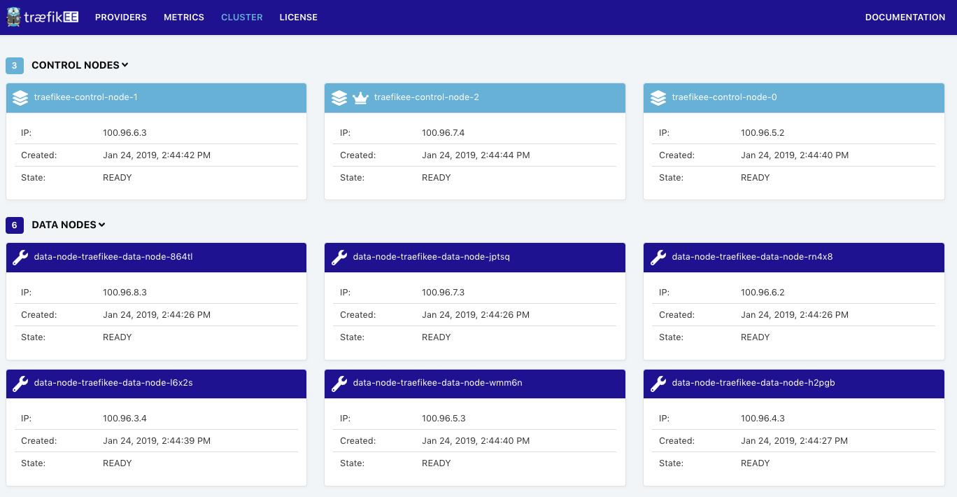 - A Data Plane composed of 6 nodes, which is the default behavior (see the flag “ — datanodes”) . TraefikEE sets up 1 data node per worker node of the Kubernetes cluster. It uses a Kubernetes Daemon Set under the hood.