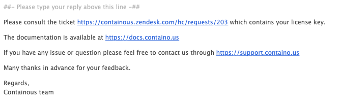 Containous: Instead of the email, you can also browse the customer portal at https://support.containo.us/, select the button “Check my existing requests / License” and open the request named “Your license key”.