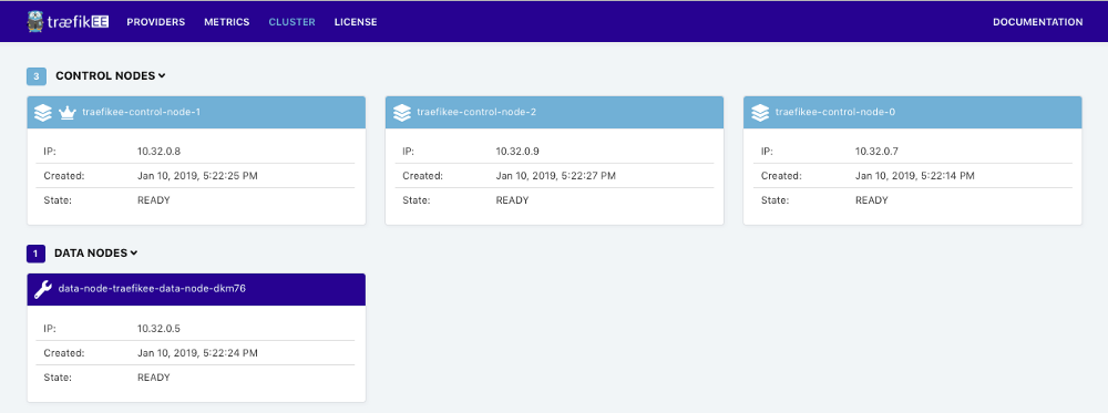 Containous: By default, there is 1 “TraefikEE Data Node” per Kubernetes node. We are using a single-node Kubernetes hence 1 data node. Wait for the next blog to learn more about the distribution.