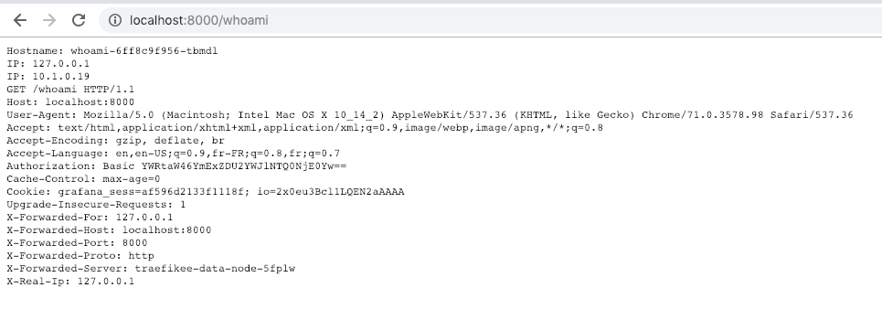 Let’s deploy an example application. It’s an HTTP web service, based on github.com/containous/whoami, which responds an HTML page with the headers of your request.