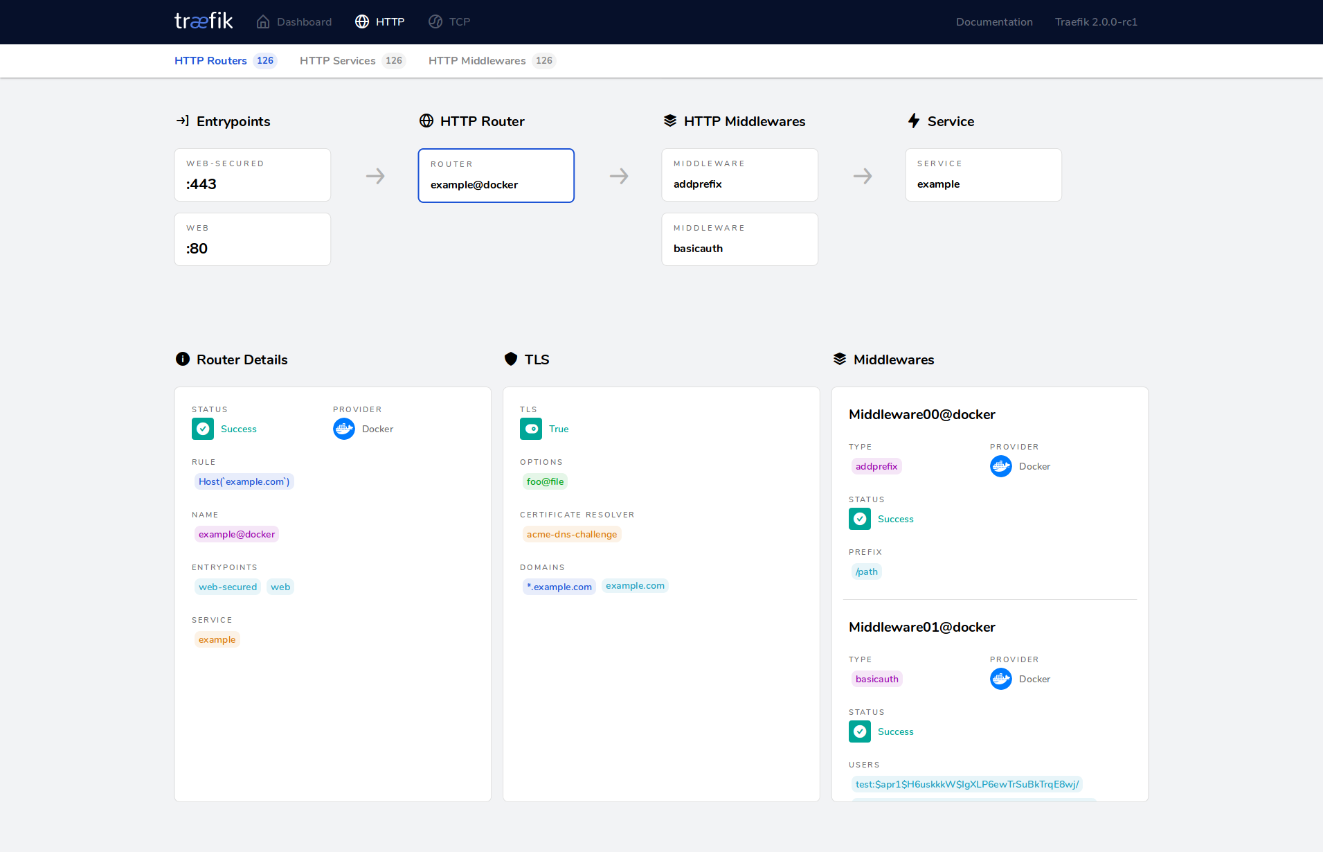 You can define TLS termination separately on each router, configure TLS passthrough, use the new CertResolver to benefit from different challenges for certificate generation (yes, it’s now multiple-DNS-providers-proof!), and dynamically generate wildcard certificates.