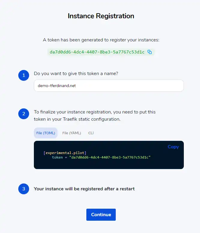 After a quick sign-up, it is now possible to register one or more instances of Traefik.