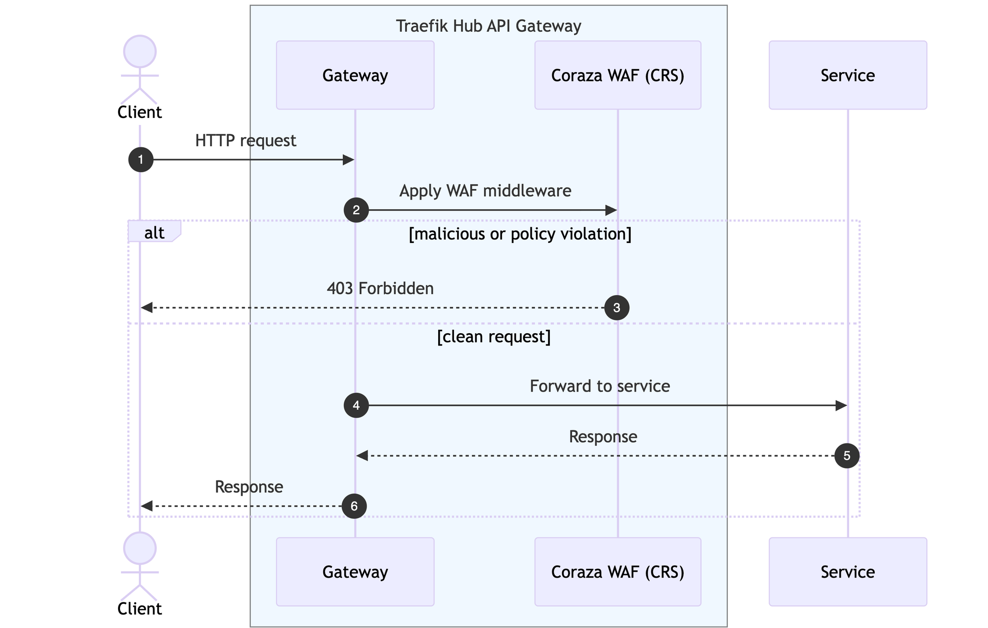 The other truth: WAFs used to mean expensive appliances and slow integrations. That is no longer the case. Traefik Hub API Gateway integrates Coraza WAF as a native feature, providing high-performance protection with an implementation flow that fits developer workflows. Coraza and OWASP CRS are both well-maintained, standalone open-source projects, and now Traefik Hub packages them into a production-ready gateway.
